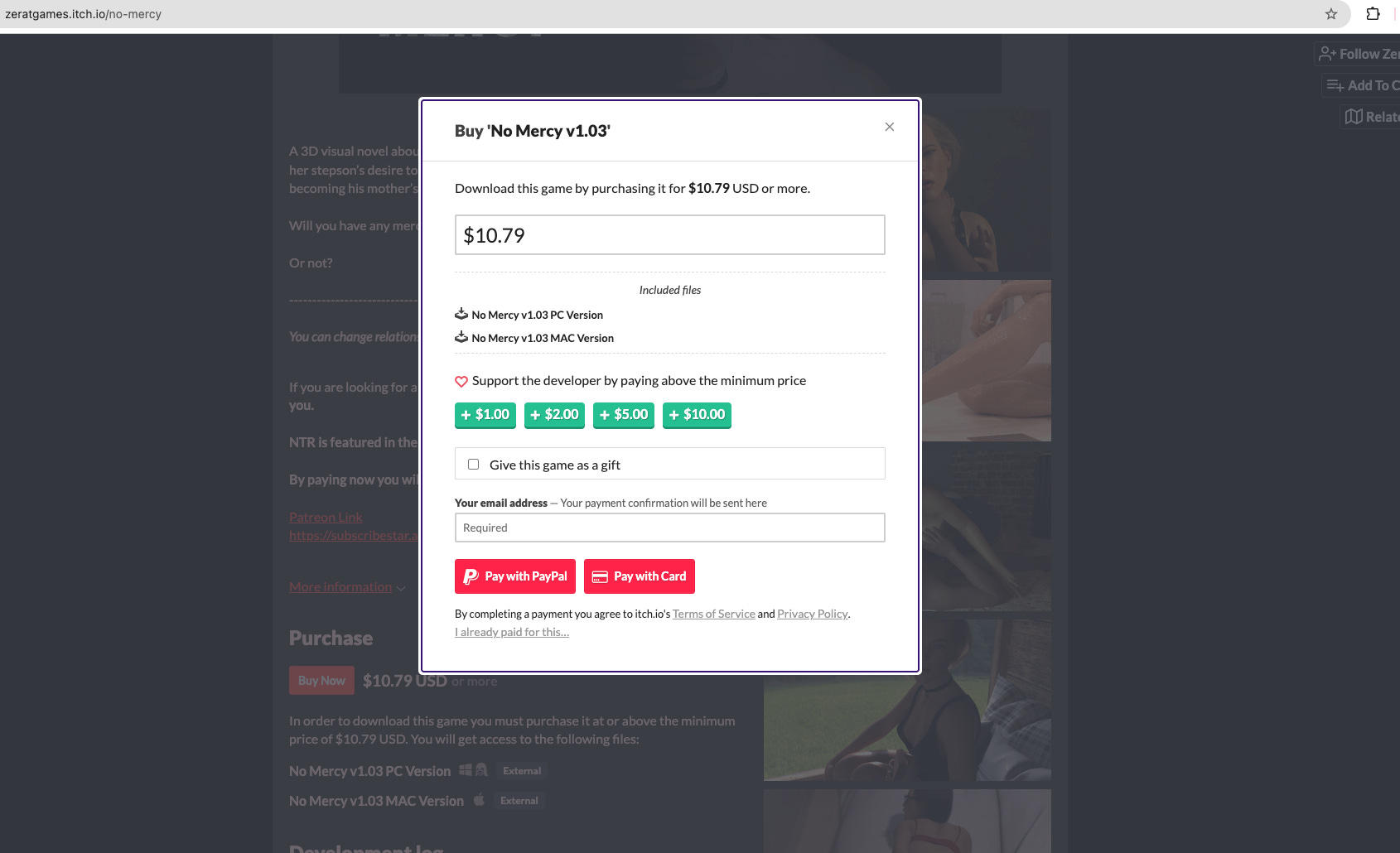 You’ve just clicked into April 2025’s latest controversy—an assault on our children’s minds—aptly titled No Mercy. It hides behind the ridiculous label of being a “choice-driven adult visual novel” (read: softcore misogyny, assault, and incest simulator). A game that landed in March on Steam, the world’s largest digital game store (Steam is a digital distribution service and storefront developed by Valve corporation).